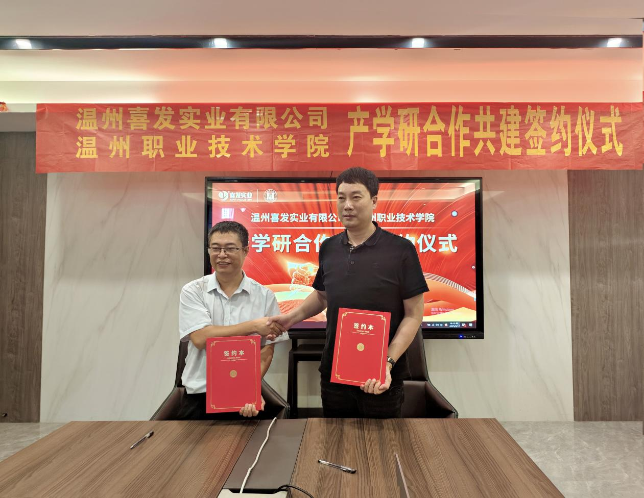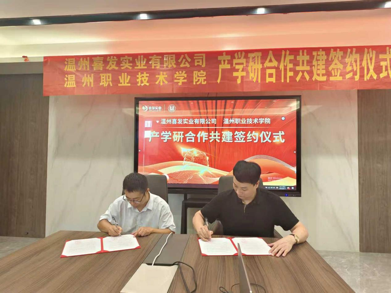 溫州喜發(fā)實(shí)業(yè)有限公司與溫州職業(yè)技術(shù)學(xué)院成功舉辦產(chǎn)學(xué)研合作共建簽約儀式!
