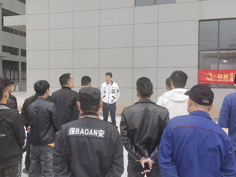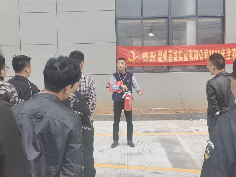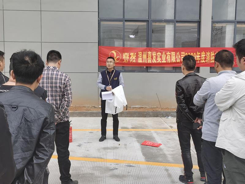 為了進一步加強公司安全工作,增強公司員工消防安全意識,提高員工對火災的應急撲救處置能力,本著堅持“安全第一,預防為主”的方針和“以人為本”的思想,4月27日下午,溫州喜發實業有限公司在新廠空曠地上,我司組織員工進行消防理論講解和消防器材使用演練。